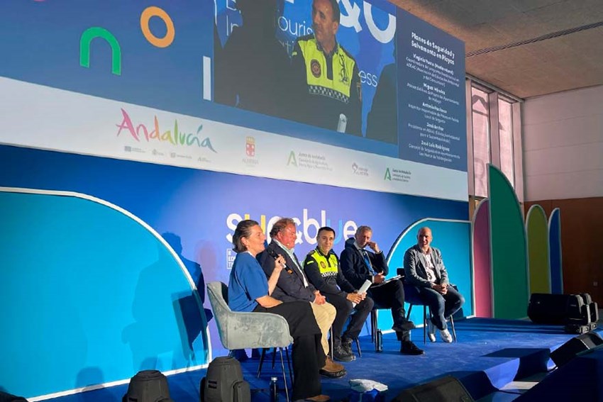 La Policía Local de Sagunto ha vuelto a participar activamente en un evento internacional, concretamente en la II edición del Sun&Blue Blue Tourism Innovation Congress, celebrada durante la pasada semana en el Palacio de Congresos y Exposiciones Cabo de Gata de Almería, consolidándose como referente en Europa sobre turismo y economía azul, con un total de 198 ponentes, 4 keynotes, 33 mesas de debate, 12 eventos paralelos (side events), 12 expositores y 6 startups, un área de networking y una zona de divulgación científica. El congreso ha estructurado sus contenidos en torno a nueve temáticas: Puertos e Industria Marítima; Islas y Territorios; Costas y Playas; Tecnología; Energía; Financiación; Deporte; Cultura y Gastronomía; y Hostelería.