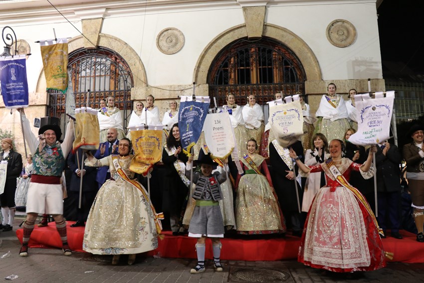 En Sección Primera de fallas grandes, la Falla Luis Cendoya ha logrado el primer premio. A esta comisión le sigue la Falla Teodoro Llorente en segundo lugar, así como la Falla Santa Anna y la Falla La Palmereta en tercer y cuarto puesto, respectivamente. En categoría infantil, el máximo galardón de Sección Primera de este año es para la Falla Luis Cendoya; el segundo ha sido para la Falla Eduardo Merello; el tercero para la Falla Gilet; y en cuarto lugar ha quedado la Falla Els Vents.