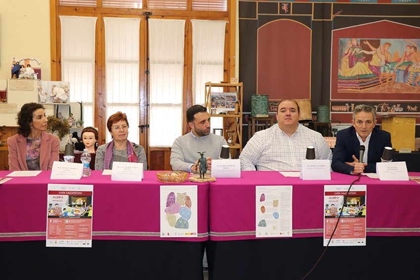 La presentación de los Lvdi Sagvntini ha tenido lugar esta mañana en la Domvs Baebia con la participación del alcalde de Sagunto, Darío Moreno; el concejal de Educación, Raúl Palmero; la presidenta de Prósopon Sagunt, Isabel Pérez; el director del CEFIRE Sagunt, Javier Manrique; y la vicepresidenta de la Asociación Lvdere et Discere, Charo Marco.