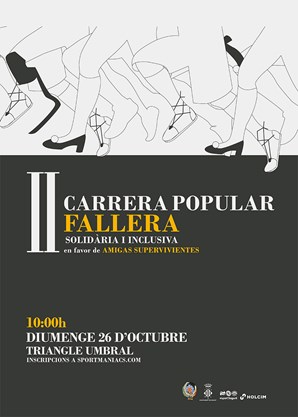 La Concejalía de Actividad Física, Salud y Deportes junto con la Federación Junta Fallera de Sagunto (FJFS) han presentado la II Carrera Popular Fallera solidaria e inclusiva. Este evento deportivo, que recorre una distancia de 5 kilómetros, se llevará a cabo el domingo 26 de octubre a las 10 horas. El punto de salida y meta será el Triángulo Umbral y los beneficios de la carrera irán destinados a la asociación local Amigas Supervivientes. La prueba se podrá realizar tanto corriendo como caminando.