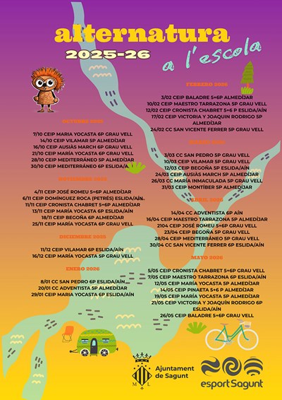 Este programa municipal está promovido por la Concejalía de Actividad Física, Salud y Deportes del Ayuntamiento de Sagunto y se dirige a los niños y las niñas de 5o y 6o curso de Educación Primaria. El objetivo de la iniciativa es fomentar en el alumnado la práctica de la actividad física a través del conocimiento de la montaña y el respeto a su biodiversidad. Cabe mencionar que en estas actividades también se desarrolla el concepto de pertenencia al grupo, la colaboración entre los participantes y la inclusión social.