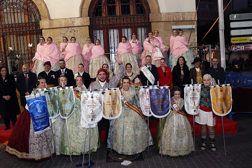 En la Sección Primera de fallas grandes, la Falla La Palmereta ha logrado el primer premio. A esta comisión le sigue la Falla Teodoro Llorente, en segundo lugar, la Falla Luis Cendoya, en tercer lugar, y la Falla Avinguda en cuarta posición. En categoría infantil, el máximo galardón de la Sección Primera de este año ha sido para la Falla Luis Cendoya; el segundo, para la Falla Eduardo Merello, el tercero para la Falla Els Vents, y el cuarto para la Falla Gilet.