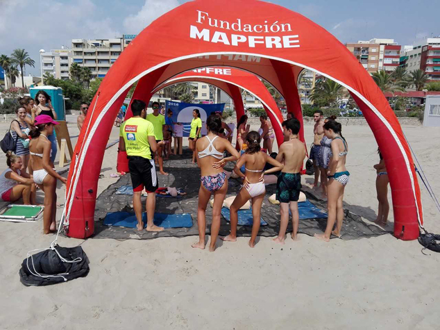 La Fundación MAPFRE y Bandera Azul instalaron varias carpas en la playa en las cuales, de 12 a 20 horas, técnicos especializados en socorrismo hicieron hincapié para que los adultos tomen conciencia de la importancia de vigilar adecuadamente a los menores de 14 años, franja de edad en la que se produce el 4 % de las víctimas mortales totales. También recordaron la importancia de que los adultos estén a una distancia máxima de un brazo de los más pequeños y dieron a conocer los principios básicos de la cadena de supervivencia en este tipo de accidentes: prevenir un ahogamiento dentro y fuera del agua, reconocer una emergencia con el fin de pedir ayuda, proporcionar un elemento de flotación para evitar la inmersión, sacar a la persona afectada del agua solo si se sabe cómo hacerlo y proporcionar asistencia sanitaria si fuera necesario.