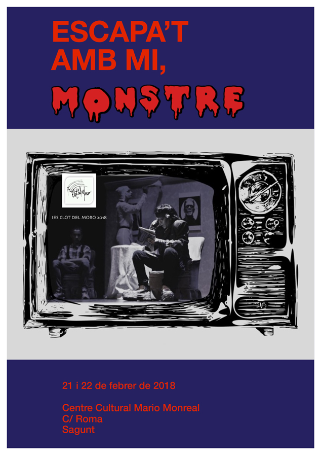 El alumnado de la optativa de teatro del IES Clot del Moro pondrá en escena la obra Escapa’t amb mi, monstre, coordinada por la profesora Pilar Ariño y otros profesores de los departamentos de música, plástica, valenciano e inglés.