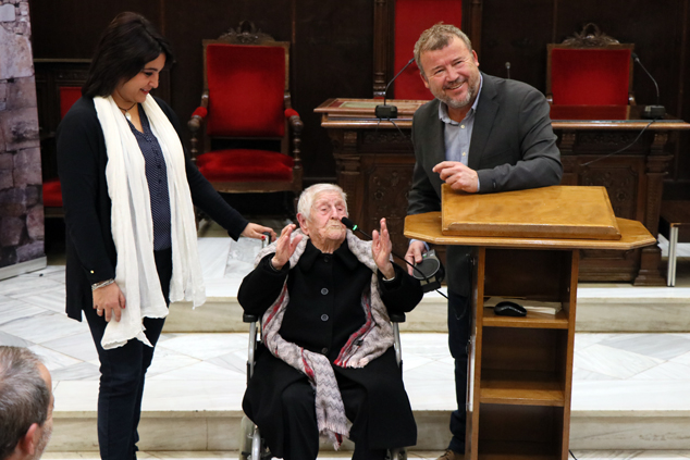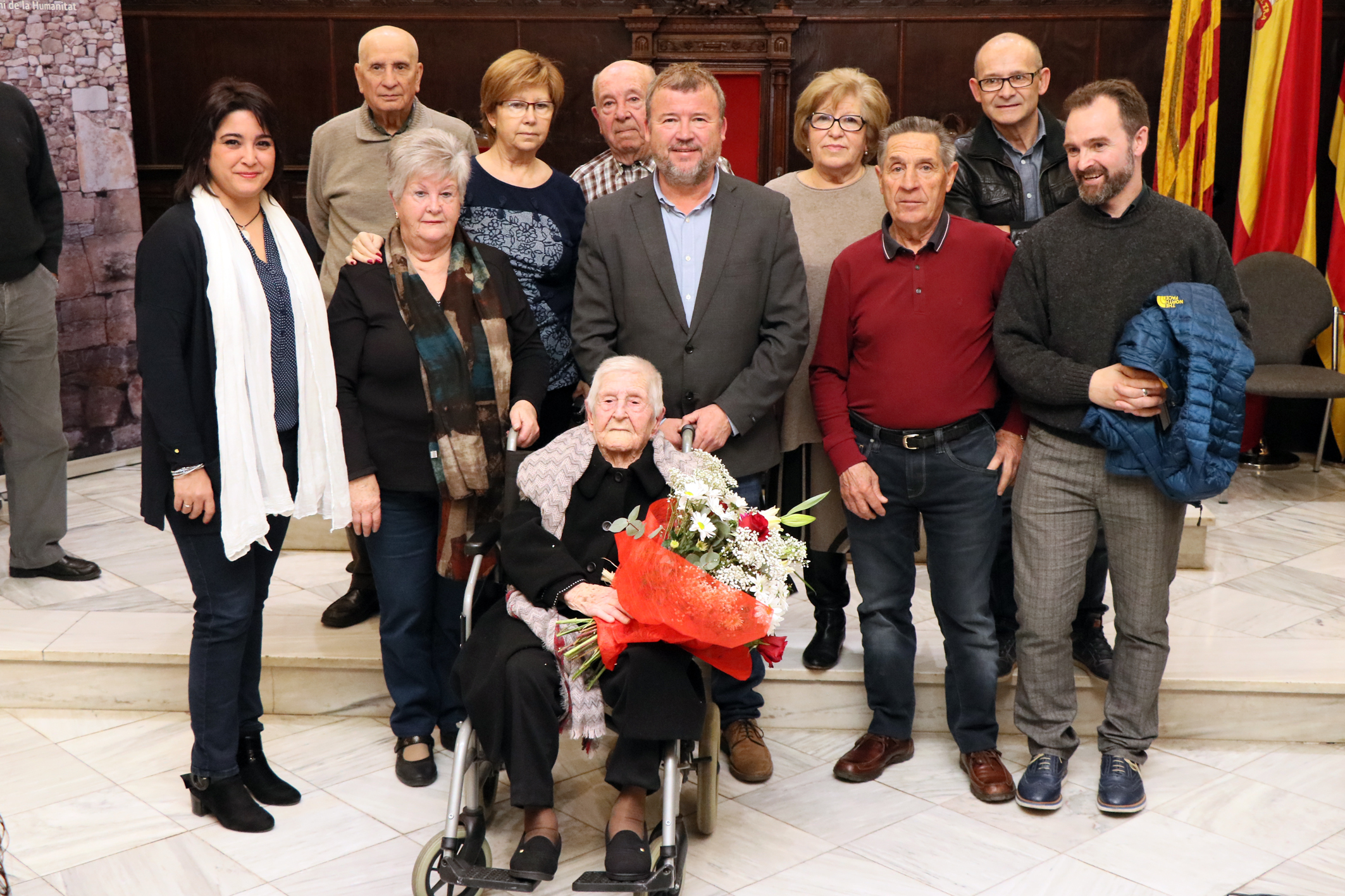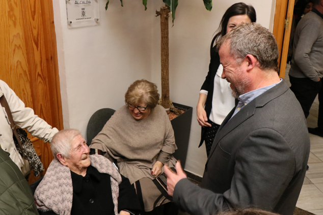 Fernández ha manifestado que es sorprendente y supone una alegría y un orgullo “tener una vecina tan longeva y con tanta vida e historia que tuvo marchar con su familia, como tantas otras, de su pueblo natal para buscarse la vida en una época muy difícil”. Quico Fernández y Natalia Antonino le han hecho entrega de una placa y un ramo de flores.