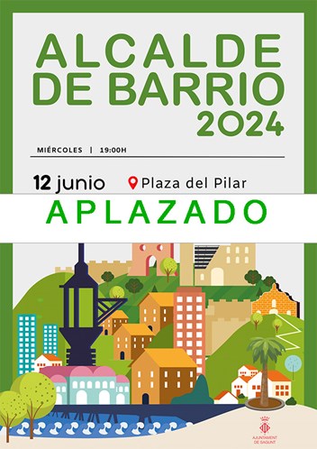 El Ayuntamiento de Sagunto anuncia que la edición de Alcalde de Barrio prevista para hoy a las 19 horas en la plaza del Pilar del barrio La Palmereta queda aplazada. El motivo son las condiciones meteorológicas que están habiendo en la ciudad en el día de hoy, ya que es un evento que se celebra al aire libre.