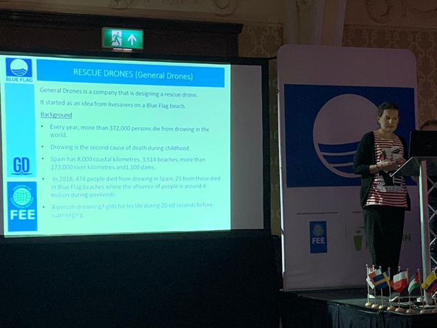 Esta referencia del municipio por parte de Bandera Azul se ha enmarcado en la Convención Internacional de Bandera Azul ‘Blue flag National Operations Meeting 2019’ que se ha celebrado en Blackpool (Inglaterra), donde se ha presentado el dron de salvamento y socorrismo que se ha utilizado este verano en las playas de Sagunto. Un dron de rescate valenciano que probó su eficacia en el marco de la Campaña Playas Aerovigiladas llevada a cabo por la empresa General Drones en seis municipios, entre ellos Sagunto, con el apoyo de Bandera Azul, cuyos resultados han sido mostrados en esta convención.