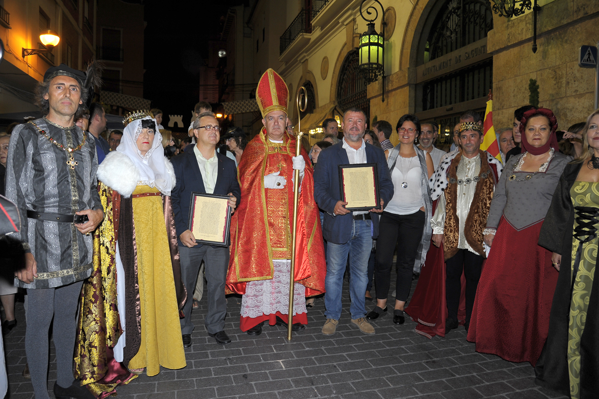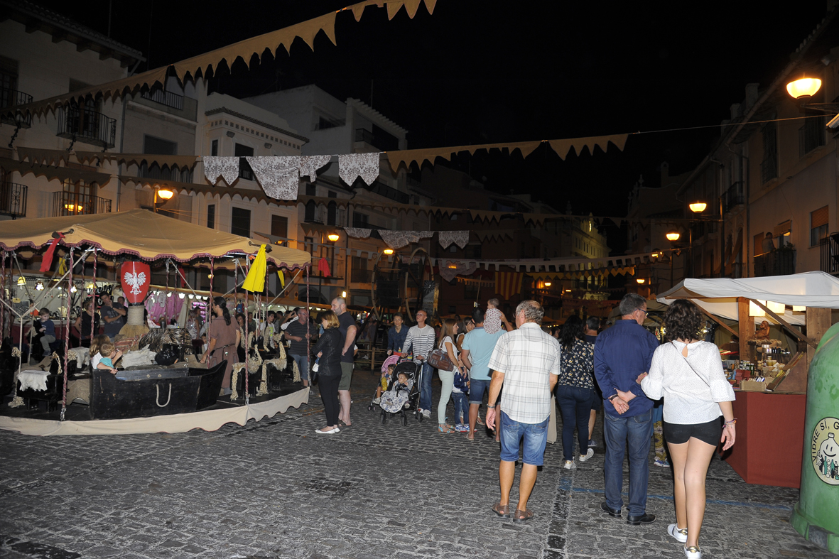 Numerosas personas disfrutaron del Mercado Medieval que este año contó con una cuidada ambientación, así como con espectáculos teatralizados. Caballeros con armadura, grupos de percusión, un Jaime I perfectamente caracterizado o los conocidos Germans Caballer hicieron las delicias de los asistentes. Este año en el mercado también había atracciones infantiles que se sumaron a la oferta de los puestos de artesanía y restauración.