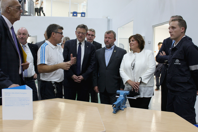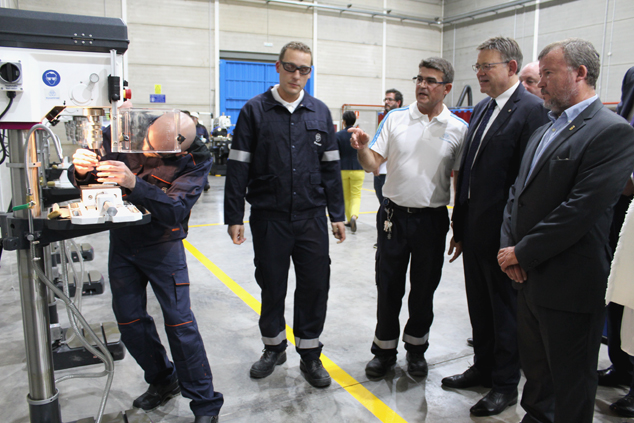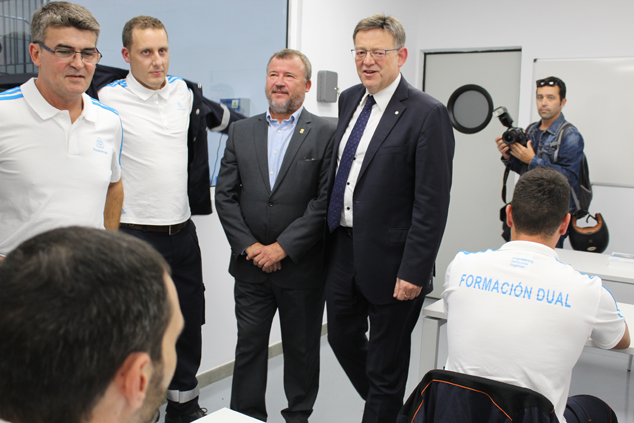 El acto comenzó con una visita guiada por las instalaciones del Centro de Formación Dual, en el que este año ya se formarán 14 alumnos, y que cuenta con un aula y distintas herramientas para poner en práctica los conocimientos adquiridos. Este taller está situado en el polígono Alto Horno de Puerto de Sagunto y está previsto que entre en funcionamiento el próximo mes de octubre.