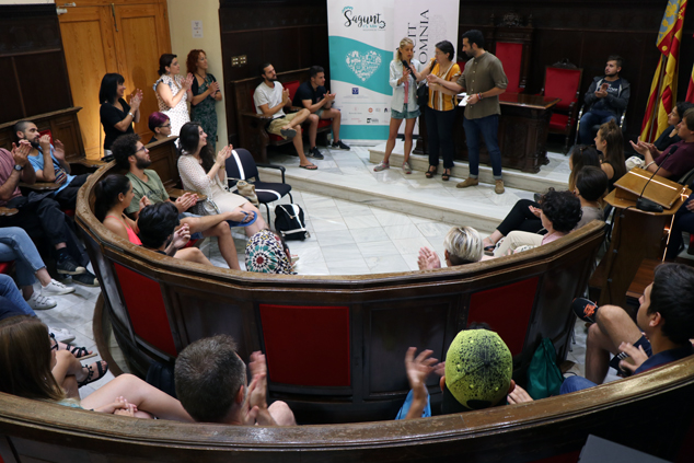 Un total de 32 alumnos y alumnas de diferentes nacionalidades (6 de Bélgica, 6 de Georgia, 5 de la República Checa, 5 del Líbano, 5 de Azerbaiyán y 5 de España) visitan estos días Sagunto gracias al programa europeo de intercambio Erasmus +. El alcalde de Sagunto, Darío Moreno, y la delegada de Turismo, Natalia Antonino, han recibido al alumnado en el Salón de Plenos del consistorio antes de hacer una visita por el centro histórico de la ciudad en la que colabora la delegación de Turismo del Ayuntamiento de Sagunto. Esta iniciativa ha partido de la asociación cultural Vincit Omnia de Puerto de Sagunto y, además de la delegación de Turismo, también han colaborado otras como por ejemplo Cultura, Juventud y Deportes cediendo espacios para la realización de actividades. Por otro lado, la Fundación de la Comunidad Valenciana de Patrimonio Industrial y Memoria Obrera de Puerto del Puerto de Sagunto les ofrecerá el viernes una visita guiada por el Horno Alto n.º2.