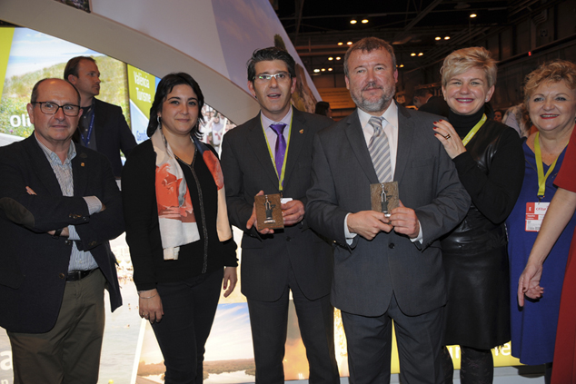 El alcalde de Sagunto, Quico Fernández, y la concejala de Turismo, Natalia Antonino, recogieron ayer en el stand de Turespaña en Fitur el galardón que premia a Sagunto como finalista de los premios EDEN. Sagunto fue finalista junto con otros dos municipios participantes. El premio fue entregado por Raquel Huete, directora general de Turismo de la Comunidad Valenciana.