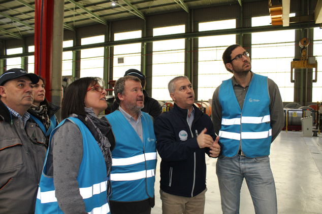 El alcalde de Sagunto, Quico Fernández, acompañado por el concejal de Actividades, Guillermo Sampedro y por la diputada Autonómica, Teresa García, ha visitado la empresa siderúrgica Gonvarri Valencia (antigua Ferrodisa), una empresa que da trabajo a 145 personas de manera continua y que se dedica a la transformación de productos siderúrgicos, en concreto al corte.