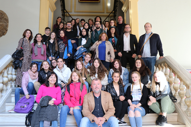 El alcalde de Sagunto, Quico Fernández, ha recibido este viernes, 5 de abril, en el Salón de Plenos del Ayuntamiento de Sagunto a estudiantes del programa Erasmus KA2, procedentes de institutos de diferentes países como son Turquía, Bulgaria, Alemania e Italia.