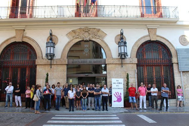 El Ayuntamiento de Sagunto, mediante la delegación de Igualdad, ha convocado un minuto de silencio esta mañana por el presunto asesinato machista ocurrido ayer en Sestao (Vizcaya). Miembros de la Corporación Municipal, del funcionariado y de la ciudadanía han condenado y repulsado este hecho en las puertas del Consistorio, de la Tenencia de Alcaldía de Puerto de Sagunto, en el edificio de Camí Reial 65 y en el Centro Cívico Antiguo Sanatorio.