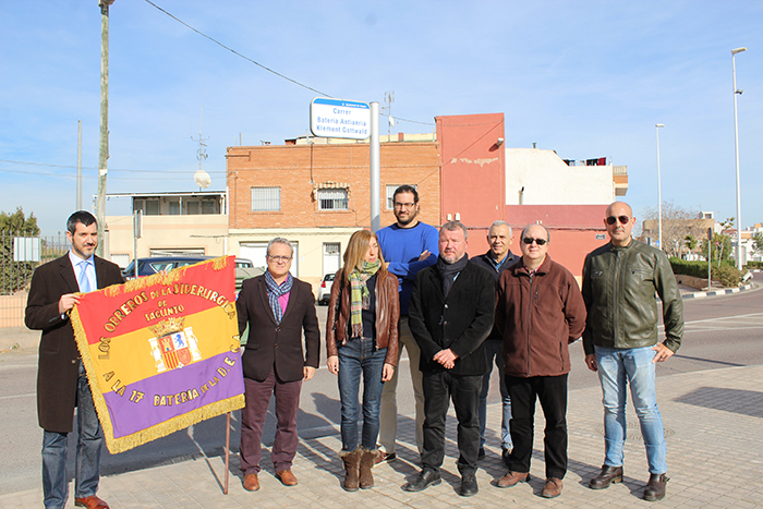 Tras el acto institucional, a las 13 h se ha inaugurado la calle en honor a la batería antiaérea Gottwald (situada cerca de la rotonda de las vagonetas en Puerto de Sagunto). El Ejército Popular de la República (E.P.R.) intentó por todos los medios ofrecer seguridad a instalaciones necesarias para el esfuerzo bélico y logístico. Para tal fin se construyeron tres emplazamientos de artillería de costa, no terminado uno de ellos, dos campos de aviación, uno secundario en Almardá y otro primario en el Grau Vell, además de emplazar la batería fija número 31 de la Defensa Especial contra Aeronaves (D.E.C.A) y la brigada Klement “Gottwald” constituida por voluntarios de nacionalidad checa y alemana.