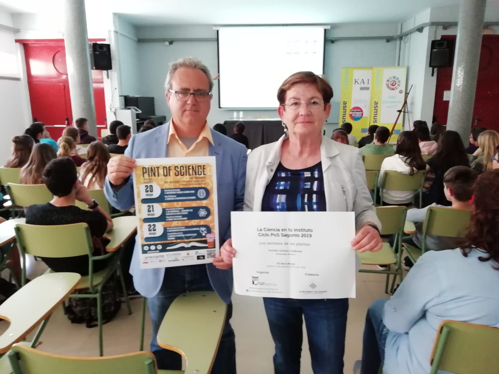 Las concejalías de Cultura y de Educación del Ayuntamiento de Sagunto colaboran con la divulgación científica promovida por la asociación Sapiencia. Esta mañana el Alcalde de Sagunto, Quico Fernández, y el concejal de Cultura y de Educación, José Manuel Tarazona, han asistido a la primera de un total de 10 charlas de divulgación de la ciencia las cuales tendrán lugar en el IES María Moliner, IES Camp de Morvedre, IES Eduardo Merello e IES Jorge hasta el próximo viernes 24 de mayo.
