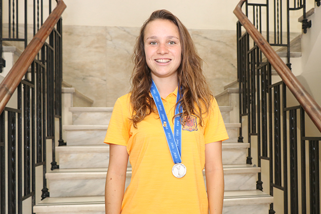 El Salón de Plenos del Ayuntamiento de Sagunto ha acogido este lunes, 27 de agosto, la recepción de la deportista local Paula Sancho. El motivo de este acto ha sido la proclamación de la joven como Subcampeona Mundial de Futbol Femenino en la categoría sub20. Durante la recepción el alcalde le ha entregado una insignia del Ayuntamiento de Sagunto como reconocimiento en nombre de la ciudad por su carrera y éxitos deportivos. También ha asistido el concejal de Deportes Miguel Chover, la delegada de Igualdad María Giménez, otros miembros del equipo de gobierno y numerosos familiares y amigos de la futbolista saguntina.