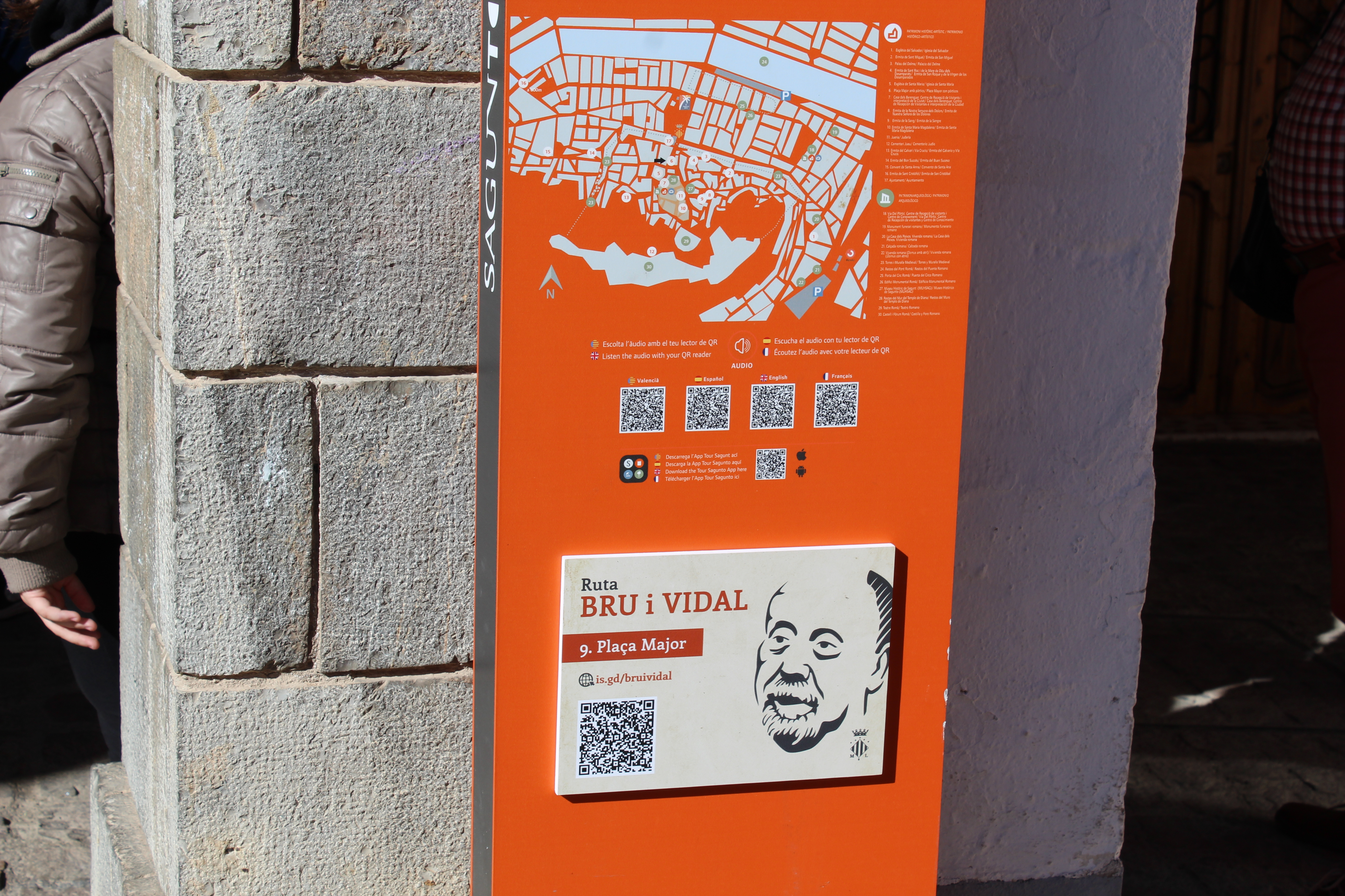 Jaume Bru i Vidal fue un historiador y poeta que nació en 1921 en Sagunto, ciudad donde también murió en el año 2000. Se convirtió en doctor en filosofía y letras y en cronista oficial de Sagunto y Valencia. Entre su obra, publicó estudios de arqueología (Les terres valencianes durant l’època romana, 1963) y de historia (La València preromàntica d’Alexandre de Laborde, 1969). Además, formó parte del movimiento de recuperación cultural valenciano de los años cincuenta en el entorno de la editorial Torre. Su poesía comprende, entre otros, las compilaciones Ala encesa (1950), Retrobament (1960, Premi València de Poesia), Cant al meu poble (1969) i Poeta en darrer cant (1985). Su obra poética está recogida en los volúmenes Testimoni i ofrena (1988) i L’instant precís (2000), publicados por Fundación Bancaja Sagunto. La obra histórica también está publicada en dos volúmenes Analecta històrica saguntina (1987) i Claus per a la història de València (1988). Fue presidente de la Secció d’Història i Arqueologia de la Societat ‘Lo Rat-Penat’ y secretario general (1966-1973) de la Secció de Cronistes Oficials del Regne de València. El 1989 fundó la revista Braçal, del Centre d'Estudis del Camp de Morvedre. El 2000 recibió el Premi de les Lletres de la Generalitat Valenciana.