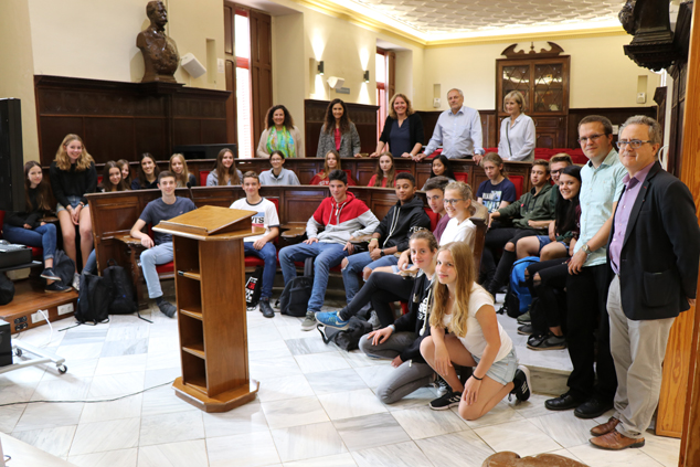 El Ayuntamiento de Sagunto ha recibido esta mañana al alumnado y profesorado de intercambio del colegio Regiomontanus Gymnasium Hassfurt de Baviera. La reunión ha tenido lugar en el Salón de Plenos y el concejal de Educación, José Manuel Tarazona, les ha dado la bienvenida.