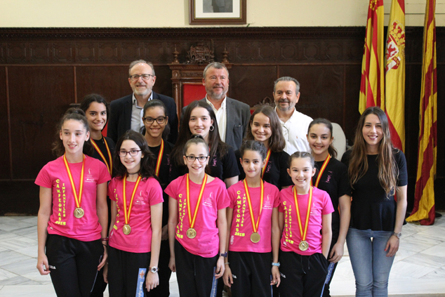 El pasado viernes, 11 de mayo, tuvo lugar la recepción de dos equipos de gimnasia rítmica en el salón de plenos del Ayuntamiento de Sagunto. Los dos conjuntos, el juvenil e infantil del Club Gimnasia Rítmica Morvedre, habían participado el pasado mes de abril en la Copa de España de Conjuntos Base de Guadalajara, donde se clasificaron como campeonas de España, en el caso de las infantiles, y subcampeonas de España, en el caso de las juveniles.