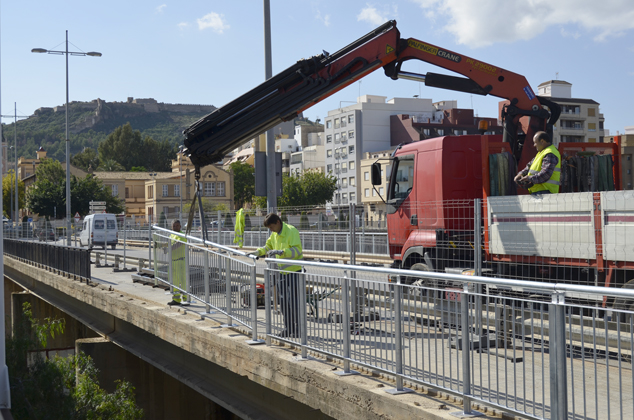 El concejal delegado de Mantenimiento, Pepe Gil ha informado que “ya se está procediendo al cambio de la barandilla del Puente Bru i Vidal, los retrasos han venido condicionados por la empresa adjudicataria del contrato porque le costó más tiempo del esperado preparar la barandilla que es muy similar a las otras”. Gil ha añadido que “Las obras estarán terminadas, teóricamente, a mitad de la semana que viene y en estas se incluye eliminar el quitamiedos que hay entre la barandilla y la calzada”. El concejal delegado de Mantenimiento ha explicado que “la eliminación de este guarda raíl no supone ningún peligro ya que ningún puente tiene este tipo de elementos y, además, conseguiremos que dicho puente tenga mejor aspecto”.
