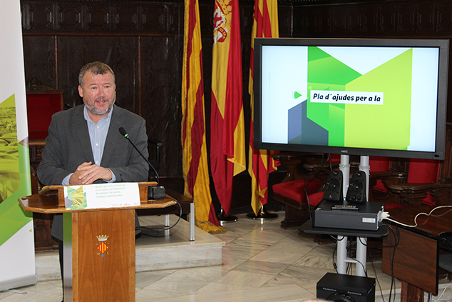 El conseller de Economía Sostenible, Sectores Productivos, Comercio y Trabajo, Rafael Climent ha presentado el programa de ayudas en el Salón de Plenos del ayuntamiento
