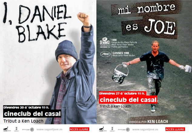 La concejalía de Juventud del Ayuntamiento de Sagunto rendirá un pequeño tributo a la figura del director y guionista británico Ken Loach. El cineclub del Casal Jove de Puerto de Sagunto proyectará dos de sus más premiadas películas: Yo, Daniel Blake y Mi nombre es Joe.