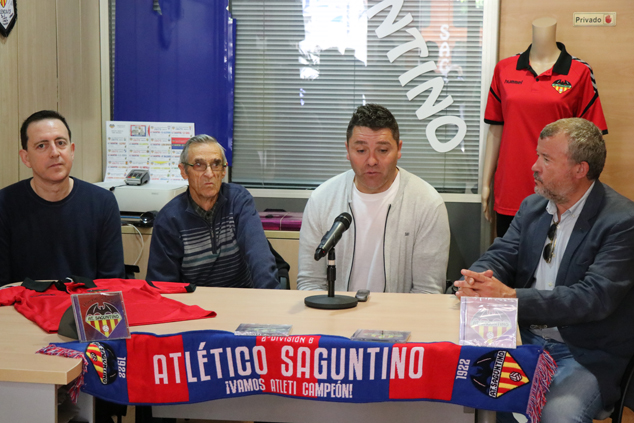 La sede del Club Atlético Saguntino ha acogido esta mañana una rueda de prensa en la que se ha presentado el nuevo himno del club. Se trata de una melodía a cargo de la banda de la Sociedad Musical Lira Saguntina y creada por su director Rafael Doménech, mientras que el autor de la letra del himno es el poeta local Juan Picazo.