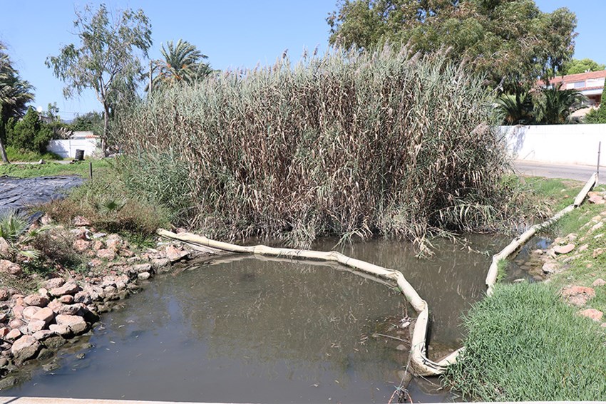 Actualmente, el tramo propuesto se encuentra colonizado por especies invasoras, como la caña común (Arundo donax), que han disminuido la capacidad hídrica de las acequias e impiden el acceso para desempeñar labores de mantenimiento. Del mismo modo, el cúmulo de envases de plásticos y restos derivados de la actividad agrícola degradan la calidad de las aguas y del ecosistema.