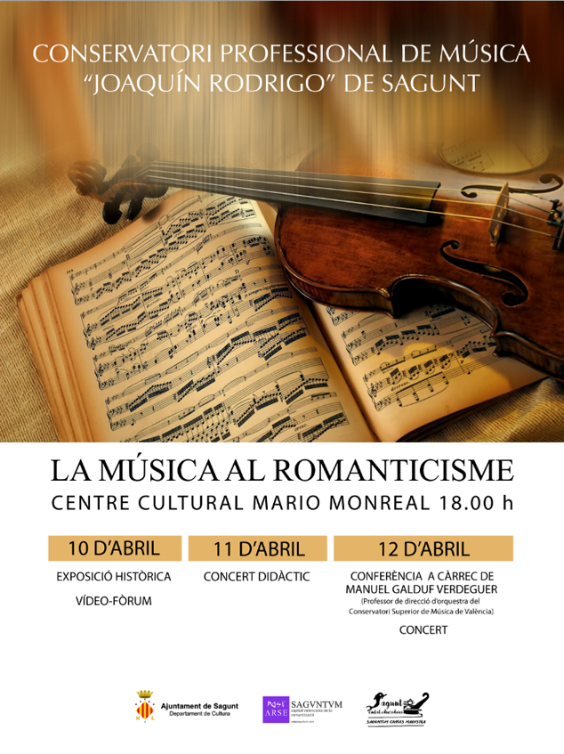 El Conservatorio Profesional de Música Joaquín Rodrigo lleva el ciclo Música Romántica al Mario Monreal. El Centro Cultural Mario Monreal acogerá los días 10, 11 y 12 de abril el ciclo con una conferencia, una exposición y un concierto.