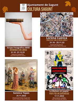 La delegación de Cultura del Ayuntamiento de Sagunto ha presentado en rueda de prensa algunas de las representaciones y exposiciones que se llevarán a cabo durante el otoño como parte de la programación otoñal de Cultura. En la presentación han estado presentes la concejala de Cultura, Ana María Quesada, así como representantes de las diversas actuaciones. Concretamente, se han presentado las exposiciones “Un mundo con libros”, del Grupo Fotográfico ARSE; y “Conversant amb les meues arrels”, de Lorena Cuenca; y la obra teatral Papa fou un superheroi, de ‘La Maison en Papier’.