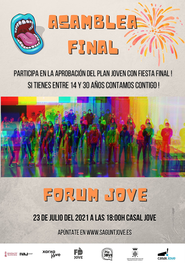 El próximo viernes, 23 de julio, tendrá lugar el tercer y último encuentro del Fórum Jove, la Asamblea del Pla Jove, con la finalidad de aprobar el documento que se convertirá en el Pla Jove de Sagunt 2021-2025, documento que guiará las futuras políticas en relación con la juventud que desarrolle el Consistorio en sus diferentes ámbitos competenciales.