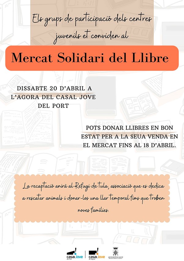 Las personas interesadas en donar libros en buen estado para su venta en el mercado solidario pueden hacerlo hasta el 18 de abril de 9:00 a 20:30 horas en el Casal Jove de Sagunto y en el de Puerto de Sagunto.