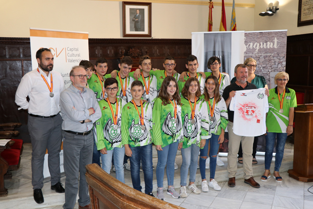 El acto se desarrolló en el Salón de Plenos del Ayuntamiento de Sagunto y empezó a las 17.30 h. El primer turno de palabra fue del concejal de Deportes, quien indicó que “el hockey es un deporte que aquí arraigará”. Además, Chover felicitó a los jugadores: “para vosotros, con una edad tan temprana que tenéis, practicar deporte es muy importante, y si es el deporte que os gusta, aún más”. En representación del club, Ana Rus, la secretaría de la junta directiva, en referencia a la pista de hockey construida por el ayuntamiento, quiso “dar las gracias por nuestro Cielo, que ya tenemos casa para competir”, además, dar las gracias al ayuntamiento por la celebración del campeonato: “un trocito de esta medalla es vuestra”.