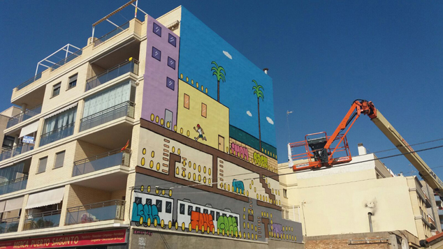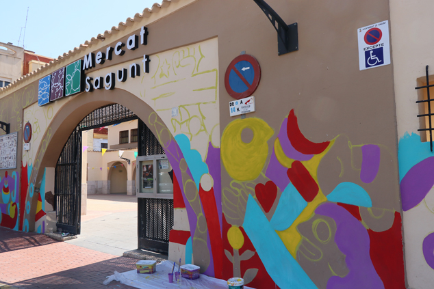 Es importante recordar que, a pesar de que el primer gran mural de esta tercera edición del festival ya está finiquitado y se puede contemplar en la pared del colegio Mediterráneo, todavía continúan pintándose otros dos murales más, uno de ellos en la avenida Mediterráneo de Puerto de Sagunto a cargo de Imón, y otro en la fachada del Mercado de Sagunto, de la mano de Elías Taño.