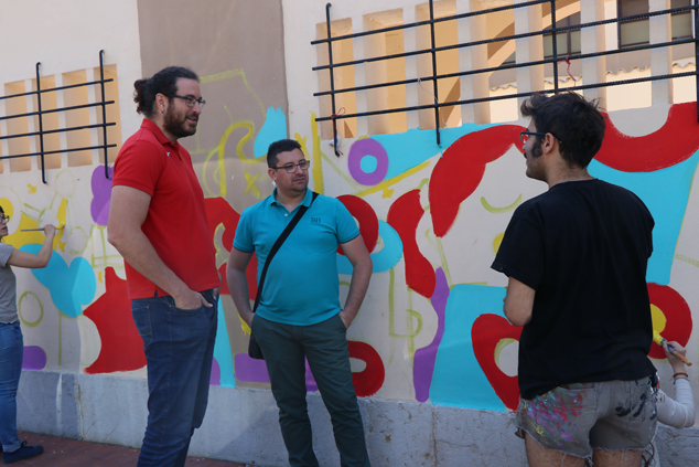 Imón es un artista malagueño con un estilo sencillo pero efectivo y que aporta mucha frescura a sus obras. Por su parte, Elías Taño es un diseñador gráfico e ilustrador canario, residente en Valencia, implicado en iniciativas y colectivos diversos de arte y sociales. Está realizando un mural junto con diferentes colectivos del municipio, como el proyecto Mil.Una, una iniciativa de búsqueda de empleo y desarrollo profesional para mujeres en el que colabora el departamento de Servicios Sociales del ayuntamiento, u otros programas como el Seafi, con adolescentes en riesgo de exclusión social, o con los estudiantes del bachillerato artístico del IES Clot del Moro, a los que esta mañana ha impartido una clase.