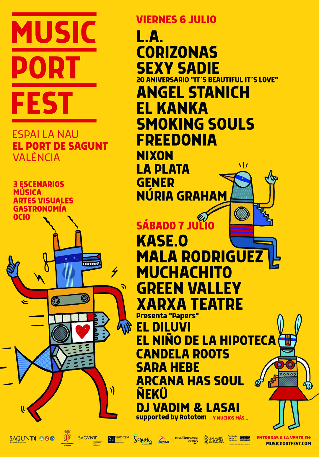 Se debe recordar que el Music Port Fest ya ha confirmado la presencia de más de veinte artistas, entre los cuales se deben destacar los nombres de Kase.O, Mala Rodríguez, Muchachito, L.A., Corizonas o Freedonia, entre otros. Además, habrá una presencia importante de bandas valencianas, con Smoking Souls, La Plata, Gener, El Diluvi, Candela Roots o Arcana Has Soul.