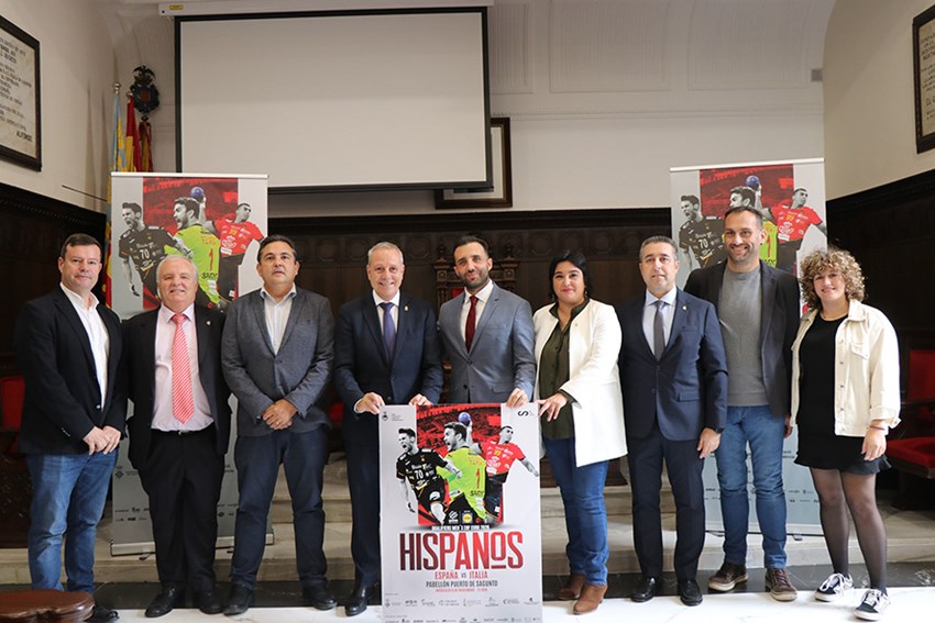La rueda de prensa de presentación de este encuentro de balonmano ha tenido lugar esta misma mañana en el salón de plenos del Ayuntamiento de Sagunto. Cabe mencionar la participación del alcalde de Sagunto, Darío Moreno; el concejal de Actividad Física, Salud y Deportes, Javier Timón; la concejala de Turismo, Natalia Antonino; el presidente de la Real Federación Española de Balonmano, Francisco Vidal; el presidente de la Federación de Balonmano de la Comunidad Valenciana, Pedro Fuertes. Asimismo, también ha estado presente el gerente de la federación valenciana, Miguel Ángel Valero; el presidente del Fertiberia BM Puerto Sagunto, Juanjo Bataller; y el representante del Club Balonmano Morvedre, Albert Llueca.