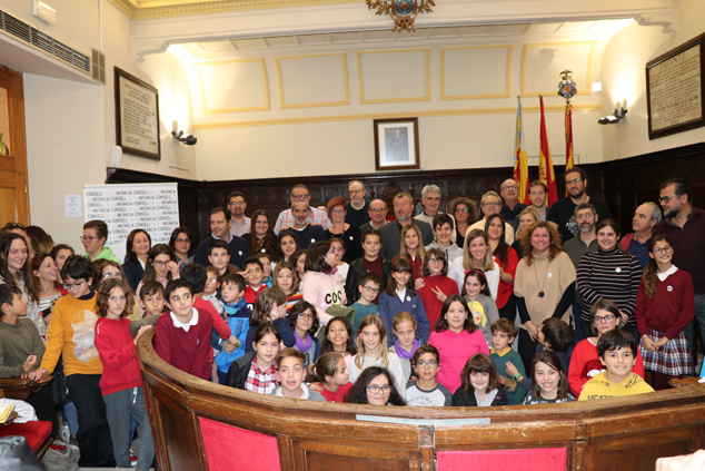Carles Albuixech tomó la palabra para contar que esta idea surge en el curso 2014- 2015, cuando “desde la concejalía de juventud se forman dos grupos de participación llamados DINAKIDS (dinamización de niños y niñas), y HRJOVE (Human Right Jove) grupos motores de participación infantil que se crean para escuchar la voz de nuestra infancia en aspectos municipales, para conocer sus demandas y necesidades y para sensibilizar, difundir, proteger y aplicar  los derechos reconocidos en la Convención de los Derechos del Niño, de la que somos signatarios”.