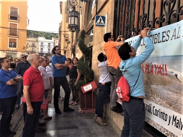 La Asociación de Vecinos de las playas de Almardà, Corinto y Malvarrosa convocaron ayer, alrededor de las 16.30 horas, una manifestación a las puertas del Consistorio en defensa de las playas de Sagunto, a la que asistieron todos los representantes de los grupos políticos del municipio mostrando su apoyo. El mismo que posteriormente, en el Pleno, ofrecerían con sus votos a favor a la declaración institucional presentada.