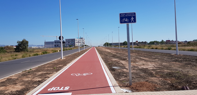 Anteriormente existía un carril bici en la calle Albert Einstein que quedaba cortado y sin continuidad, pero, con la reciente actuación de urbanización en las calles Albert Einstein y Madame Curie, se ha prolongado, a través de estas calles, dicho carril bici para que quede conectado con el que discurre por la CV-320.