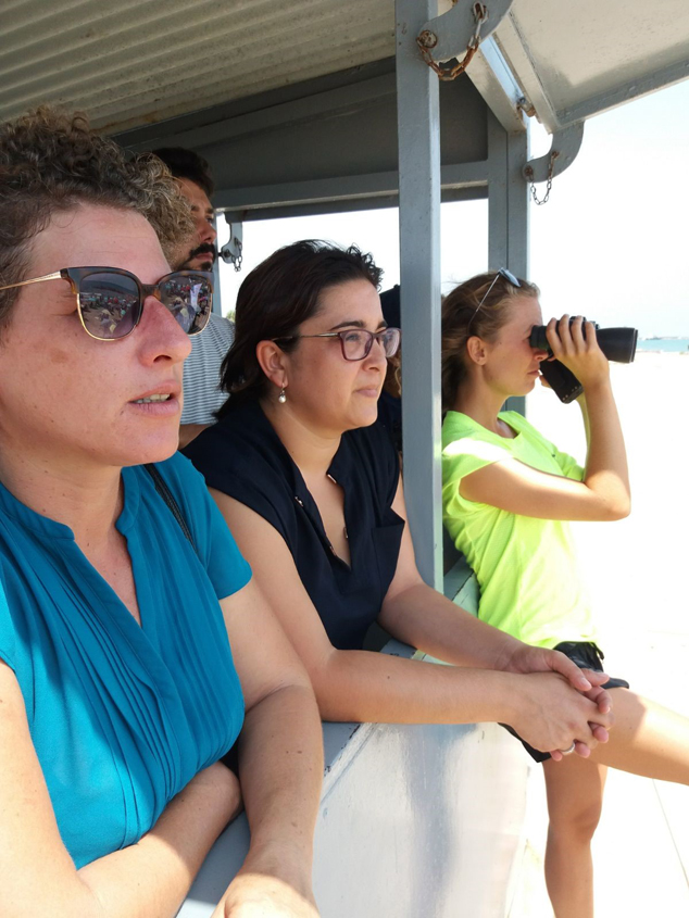 La concejala de Playas, Mónica Caparrós, y la concejala de Turismo, Natalia Antonino, en la posta de socorristas