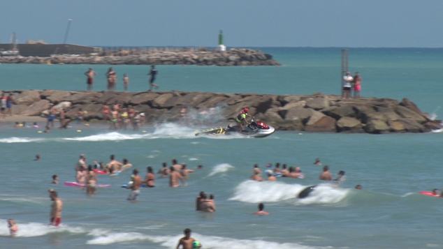 El simulacro ha consistido en el rescate de dos personas. Una vez han sido avistados desde la torre de control, ha sido enviado el dron para realizar la primera tarea de confirmación y lanzar un chaleco salvavidas. Una vez rescatados por la moto acuática del servicio de socorrismo se ha habilitado una zona de seguridad que ha permitido que la moto los trasladara hasta la orilla.