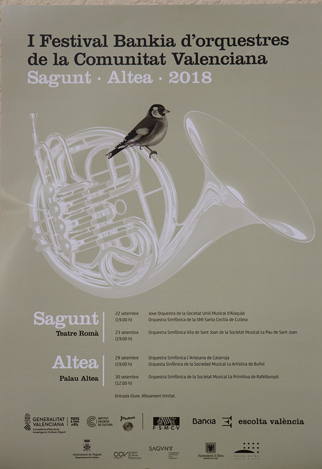 El Teatro Romano acogerá este fin de semana el I Festival Bankia d’Orquestres de la Comunitat Valenciana 2018, patrocinado por Bankia en colaboración con el Institut Valencià de Cultura y el Ayuntamiento de Sagunto. Estos conciertos será el próximo sábado 22 y domingo 23 de septiembre, a las 19 horas, con entrada libre hasta completar el aforo.