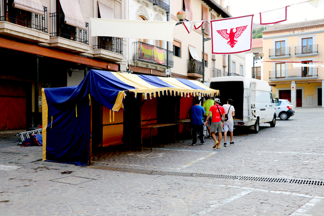 Los vendedores preparan los puestos para el Mercado Medieval