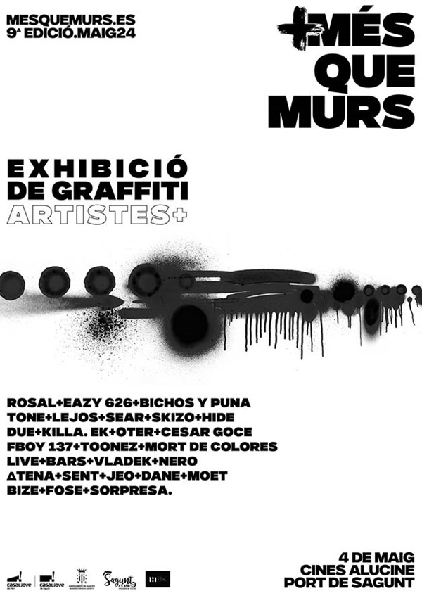 Cerca de 30 grafiteros, fundamentalmente del Camp de Morvedre, exhibirán sus obras en las paredes de los cines Alucine (c/ Fundición del Puerto de Sagunto), este fin de semana con motivo de la novena edición del festival de Arte Urbano Més que Murs.