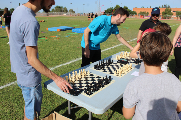 Los niños y niñas que acudieron el viernes al polideportivo pudieron disfrutar jugando al ajedrez o practicando ejercicios de gimnasia rítmica o de lucha libre, entre otras disciplinas deportivas.