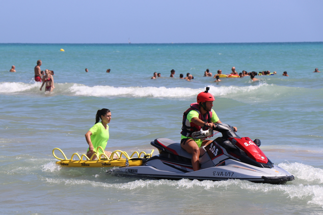 El delegado de Playas, Roberto Rovira, ha destacado el compromiso que el Ayuntamiento de Sagunto tiene con los criterios de Bandera Azul y con el servicio de Salvamento y Socorrismo ya que son las claves para tener unas excelentes playas. “Para este Ayuntamiento es complicado cubrir unas playas con tantos kilómetros de arena, pero logramos hacerlo ya que tenemos dos puntos accesibles, tres postas, torres de vigilancia y un equipo humano que ha logrado mantener muchos de los distintivos de calidad”, ha manifestado Rovira, quien también ha recordado el servicio de Dron de Salvamento, pionero en nuestras playas, que lo que consigue es reducir el tiempo de respuesta ante un accidente en el agua, así como la formación que se les ha dado al personal de socorrismo y salvamento para refrescar conocimientos.