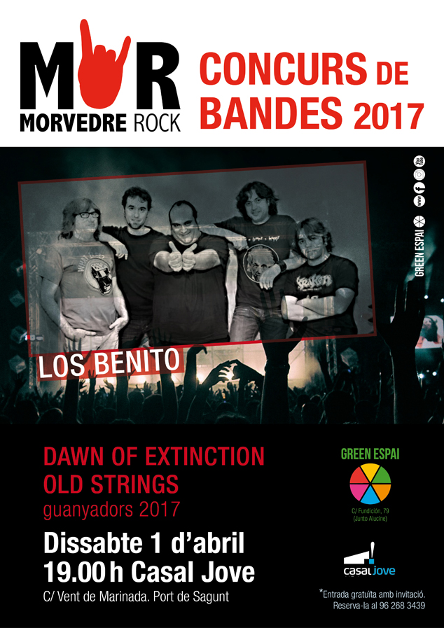 La concejalía de Juventud del Ayuntamiento de Sagunto presenta a los ganadores de Morvedre Rock 2.0. La banda Dawn of Extinction ha ganado dentro de la modalidad A de grupos locales y en la modalidad B de grupos del resto de la Comunidad Valenciana ha ganado Old Strings.