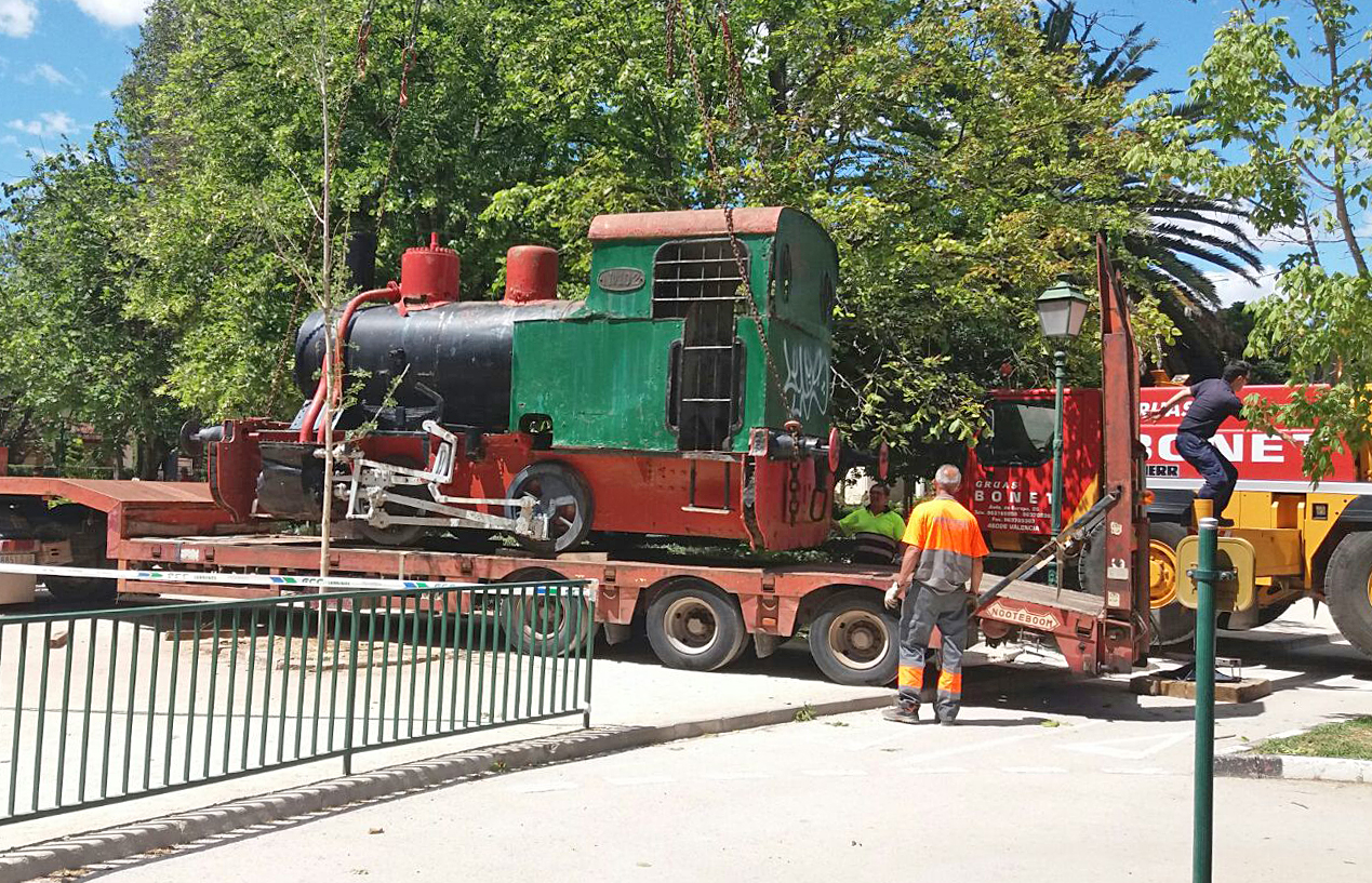La antigua locomotora de AHM que estaba en Viveros ya se encuentra en Puerto de Sagunto